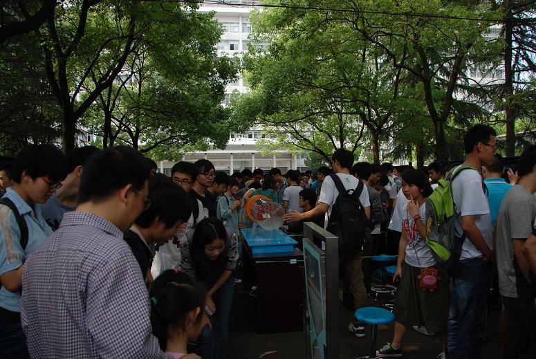 开幕式结束后,与会师生现场参观了数理文化科普的展板和展台,并亲身体验了相关实验项目。展演现场吸引了众多师生和留学生驻足观看并体验。一件件凝聚智慧火花的数理创意作品;一帧帧数学文化系列展板;一项项物理开放性实验;集游戏、互动、趣味、竞赛于一体的数理趣味知识竞赛等增强了大家对数理知识的了解和认同,彰显出数理科学的活力和美感。