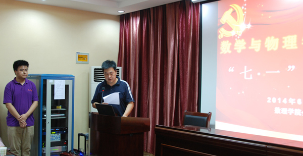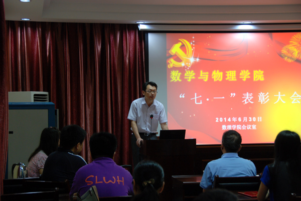 2014年6月30日上午10点半,pp电子游戏平台官网在基础楼二楼报告厅召开了庆祝建党93周年暨“七一”表彰大会,校党委组织部副部长刘治国、院党委书记李宇凯、副院长张光勇、副书记李杰出席表彰大会。参加表彰大会的还有教工党员和学生党员代表。