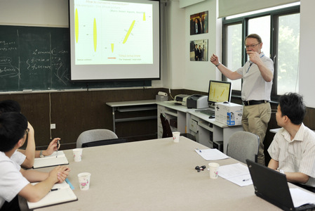 应pp电子副院长陈刚教授邀请,欧洲物理与工程技术协会主席、挪威University of Bergen物理系László Pál Csernai教授来pp电子进行交流访问,中国原子能研究院萨本豪研究员陪同。László教授长期从事高能核物理和粒子物理研究。访问期间,László教授与pp电子物理系师生就高能粒子物理学的前沿问题进行深入交流和探讨,同时,还就University of Bergen物理系与pp电子高能粒子物理学合作研究方面交换了意见。