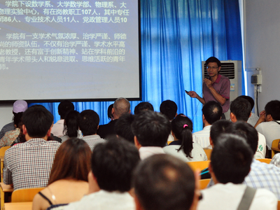 8月25日-9月2日,pp电子游戏平台官网2011年迎新工作全面展开,包括迎新注册、新生家长见面会、走访学生宿舍、开学典礼、专业介绍会和专题讲座等一些列活动。8月27-29日,院领导班子成员通过家长见面会和实地走访寝室与家长和同学们广泛交流,解答问题。8月30日上午9点,新生开学典礼在教三楼109举行,刘安平院长作学校概况和学院状况介绍,全国教学名师谢兴武教授作为教师代表寄语广大新生同学。会后,各三级单位负责人分别为2011级新生同学进行专业介绍会;在尹林和唐小民两位班主任的指导下,少数民族预科班通过公平公正的选举产生本班班委成员。此外,受院长刘安平教授的邀请,华中科技大学数统学院刘斌教授为广大新生作题为《谈谈数学与物理学之魅力》的讲座报告。至此,pp电子游戏平台官网2011年迎新工作圆满结束。