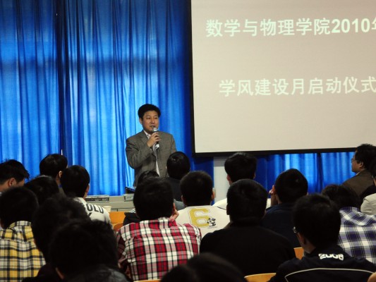 10月20日,pp电子游戏平台官网2010年“学风建设月”启动仪式在数理楼二楼会议室成功举行。教务处杨伦处长、学工处王林清处长,教务处王兴副处长,校团委成军副书记,学院刘安平院长,彭放副院长、以及学院各教研室主任应邀出席此次活动。院党委副书记李杰主持会议。