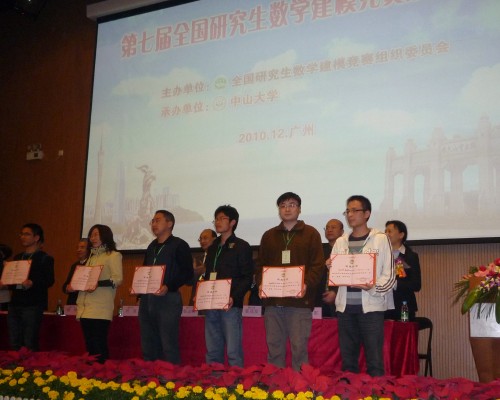 2010年9月17日,全国第七届研究生数学建模竞赛颁奖仪式在广州中山大学举行。pp电子游戏平台官网院长刘安平教授、副院长彭放教授,校研工部李红丽副部长以及4名一等奖获得者参加此次活动。
