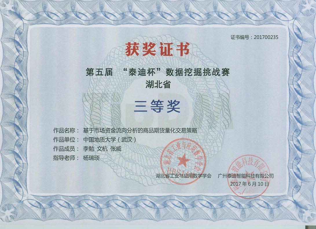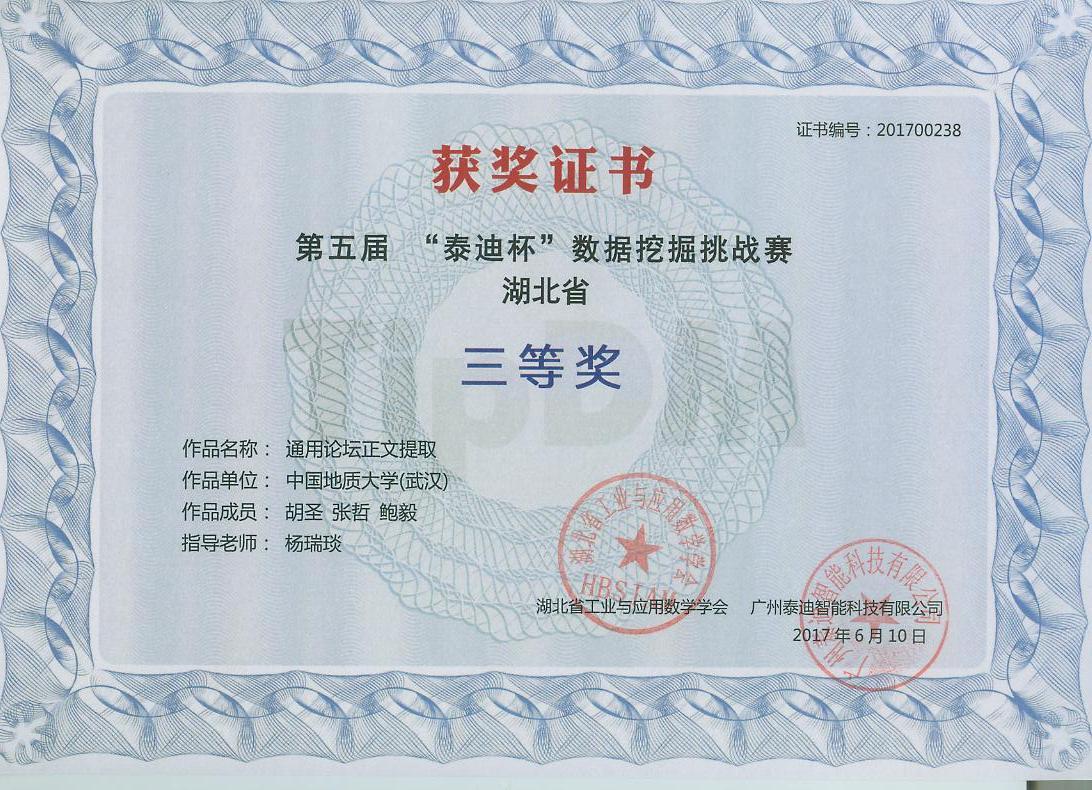 据“泰迪杯”数据挖掘挑战赛组委会近日公布的结果,在2017“泰迪杯”竞赛活动中,pp电子第一次参加此项活动,在3支代表队中获得湖北省三等奖2项的好成绩。