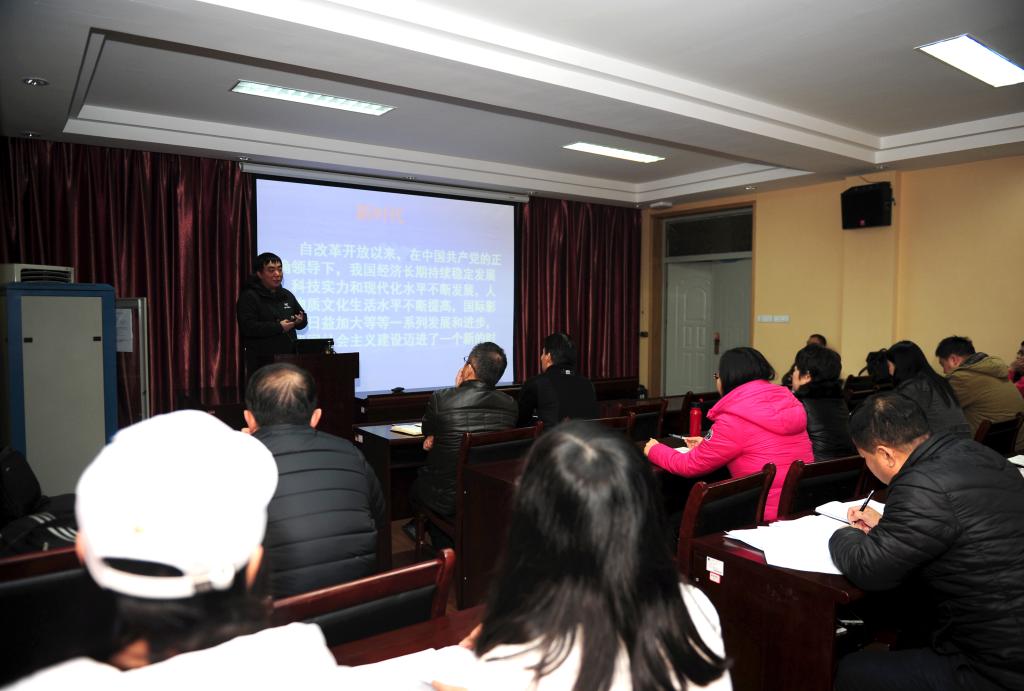 2017年12月29日下午,副校长赖旭龙同志来到pp电子游戏平台官网,为pp电子游戏平台官网和体育部的教工党员讲党课,宣讲党的十九大精神。