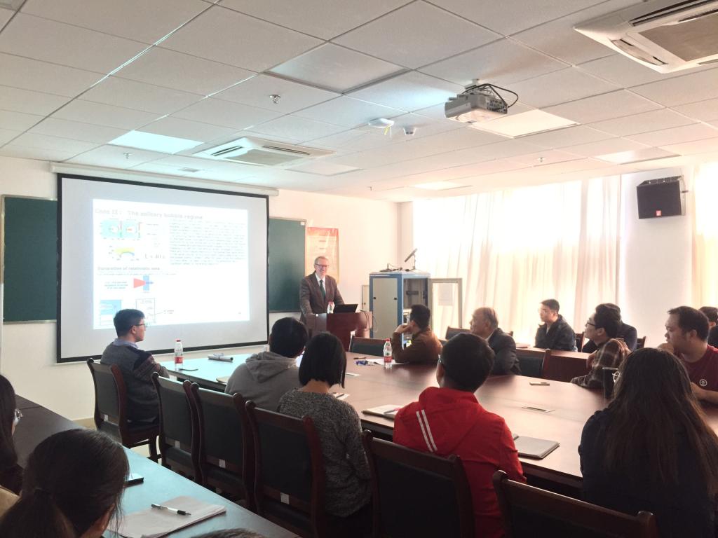 应pp电子游戏平台官网的邀请,国际高能粒子物理领域知名专家、欧洲科学院委员会委员,挪威科学院院士,匈牙利科学院外籍院士,挪威卑尔根大学Laszlo P. Csernai教授,于10月25日至11月3日来pp电子进行学术访问。其间,为pp电子师生作关于“Laser driven thermonuclear fusion for energy”的学术讲座。就目前国际上的热点的科技问题进行了讲演。有部分本科生、研究生和教师参加了报告会。报告的内容深受到会师生的欢迎,报告会后有不少老师和同学踊跃提问,现场交流气氛十分活跃。总之,通过这次举办名家论坛学术活动,使pp电子和pp电子师生开阔了的视野、增长了知识,活跃了学术气氛。这对pp电子的学科建设和学术活动的开展起到了促进和推动作用。