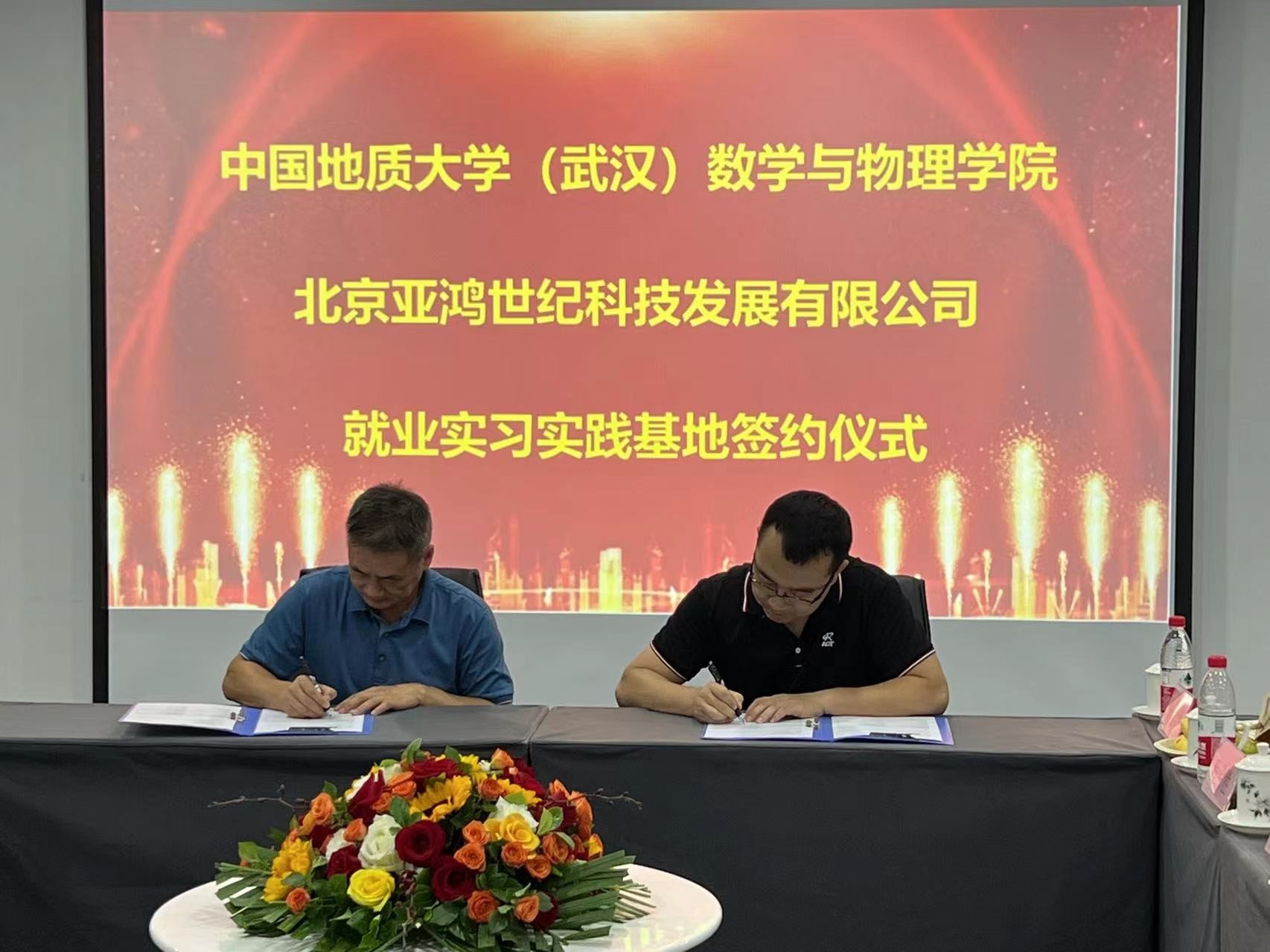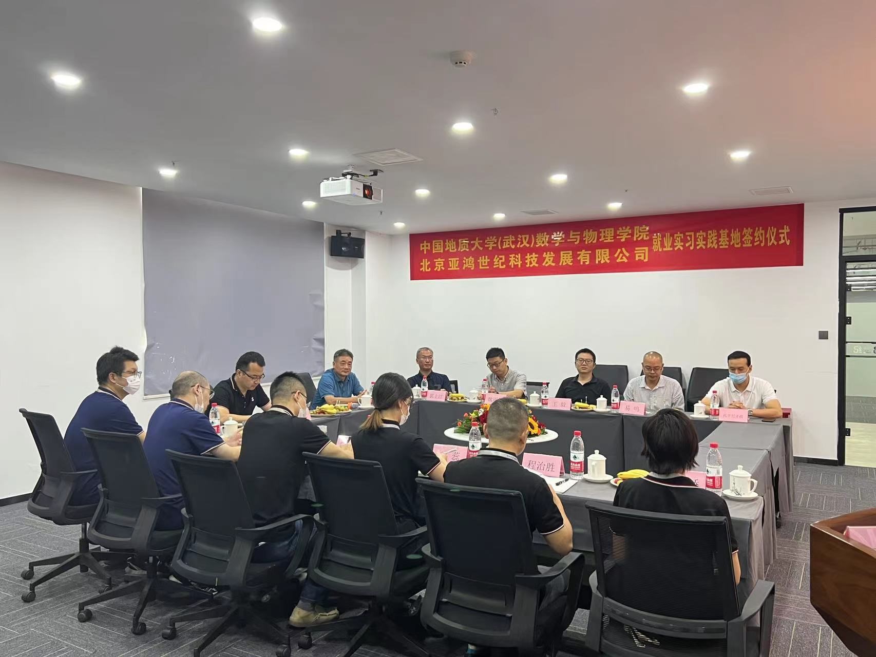 为推进产学研合作,深化本科人才培养模式改革,提高数学类本科人才培养质量,落实访企拓岗促就业专项行动工作要求,加强校企合作,9月30日,pp电子与北京亚鸿世纪科技发展有限公司(以下简称“亚鸿公司”)签署中国地质大学(武汉)pp电子游戏平台官网就业实践基地协议。学院书记吴太山、学院院长郭上江、副院长魏周超、数学与应用数学系主任王毅、信息与计算科学系主任易鸣、辅导员托乎尼牙孜与北京亚鸿世纪科技发展有限公司总经理兼党支部书记林飞、数据智能分析部总监熊骁、信安产品研发部总监刘俊、产品交付部副总监陈凌浩、启航部副总监刘蕊、数安产品研发部副总监程治胜、研发管理部副经理代春娇以及人力资源部经理李莉等部门负责人座谈交流,共同见证签约。
