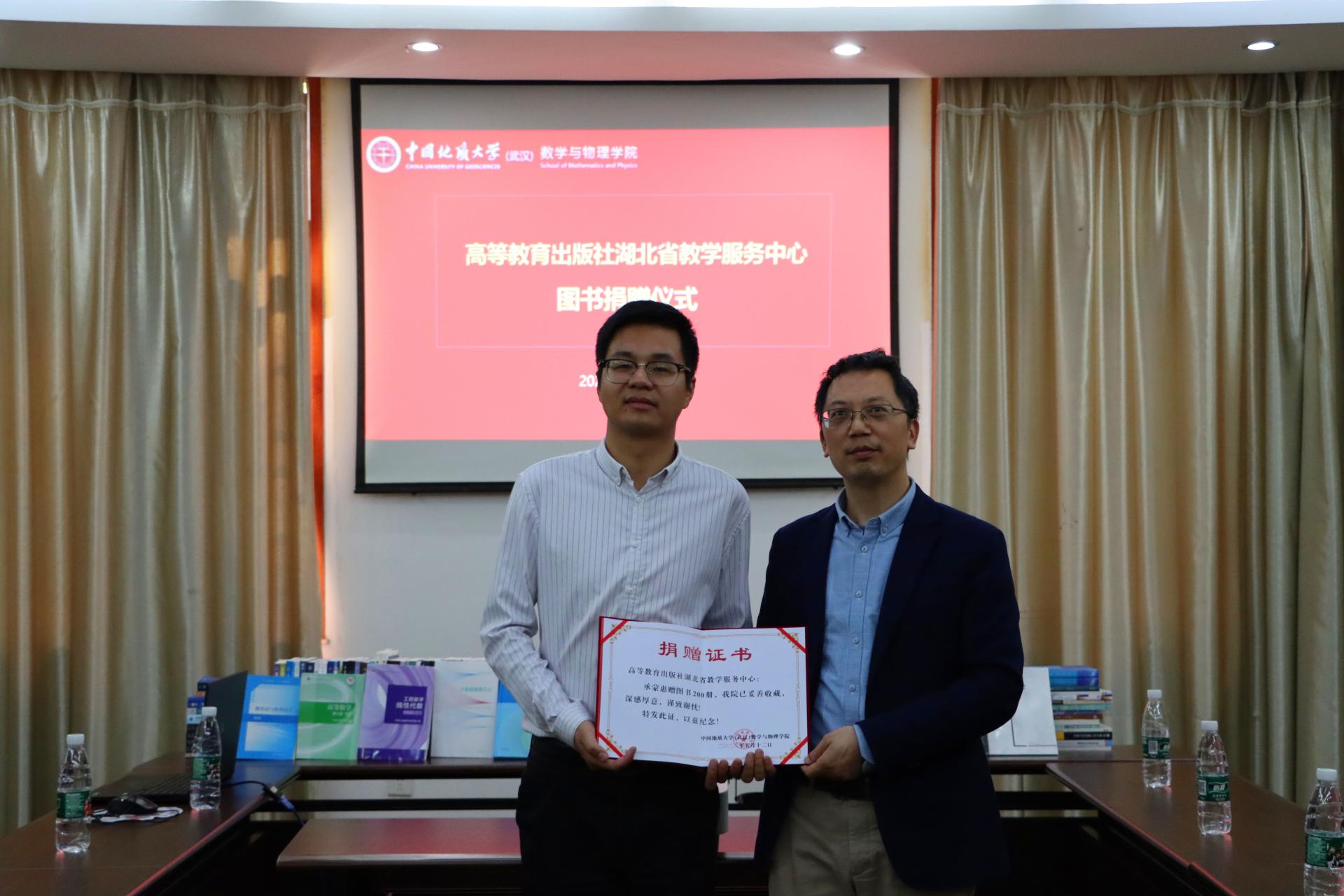 5月12日下午,高等教育出版社湖北省教学服务中心副主任叶望一行来中国地质大学(武汉)pp电子游戏平台官网调研交流,并向学院捐赠图书200余册。捐赠仪式在迎宾楼第四会议室召开,pp电子副院长黄刚等参加仪式。