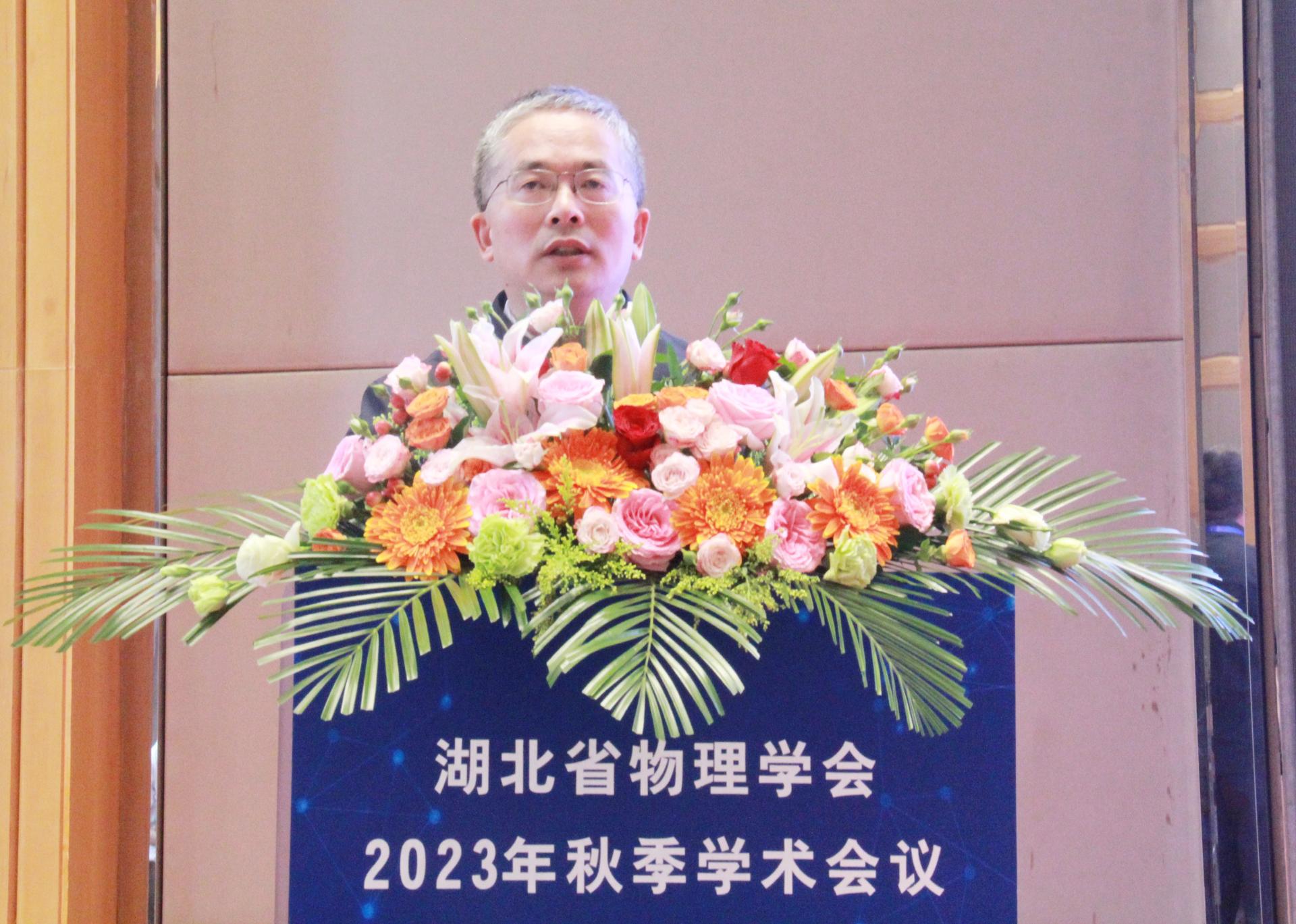 中国地质大学(武汉)党委副书记王林清出席开幕式并致辞。王林清在致辞中谈到pp电子始终重视物理、数学等基础学科的发展,湖北省物理学会也是担负着物理学以及相关学科繁荣发展的重任,希望以本次会议为契机,搭建湖北省物理学界及相关领域专家学者的交流平台,提高物理学科的学术水平及人才培养质量,促进重大成果产出和产学研成果转化,助力湖北武汉成为具有全国影响力的科技创新中心,为中国实现高水平科技自立自强做贡献。