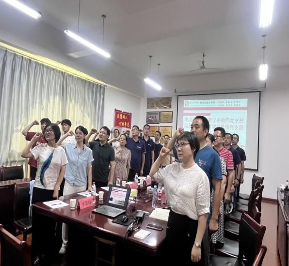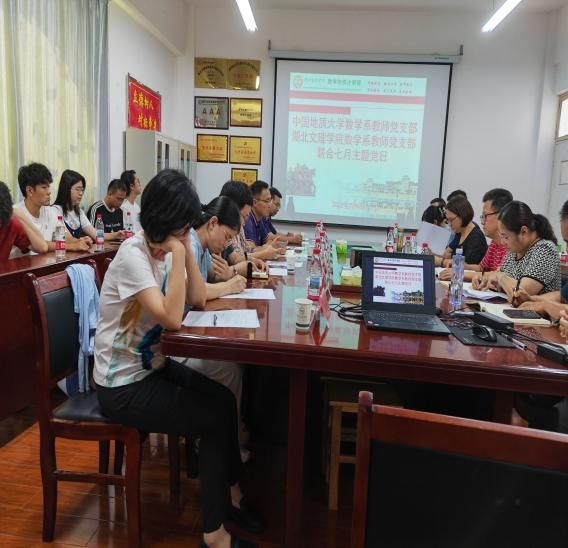 7月4日下午,数学系教师党支部与湖北文理学院数学与统计学院数学系教师党支部 N6-312会议室联合开展七月主题党日活动。在 “回顾初心、党性教育、民主议事、实践锻炼” 主基调下:全体同志奏唱国歌,在刘志苏书记领誓下重温入党誓词,缴纳七月份党费并开展相关政治理论学习。