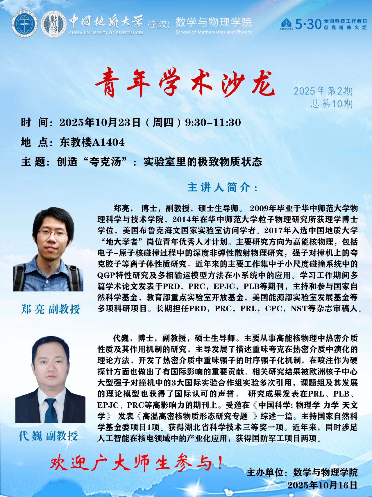 2025年10月23日青年学术沙龙第10期:创造“夸克汤”:实验室里的极致物质状态