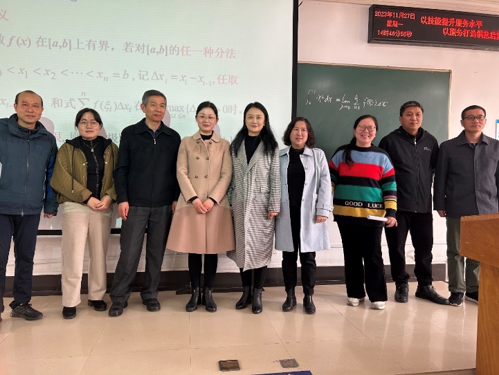 2023 年 11 月 27 日,在大学数学教学部组织下,大学数学教学部多名教师在北综楼101现场观摩了陈兴荣老师的“高等数学”公开课。陈老师将多媒体与板书完美结合,授课手段使用合理有效。授课中,陈老师通过精心设计例题,丝丝入扣,教学环节衔接自然,语言准确,讲解清晰明了,将枯燥的概念讲得深入浅出,通俗易懂,启发式教学引导学生思考、分析问题,积极参与教学活动,课堂师生互动充分,整个课程气氛活跃,达到了很好的教学效果,陈老师的授课得到了观摩教师们的一致好评。
