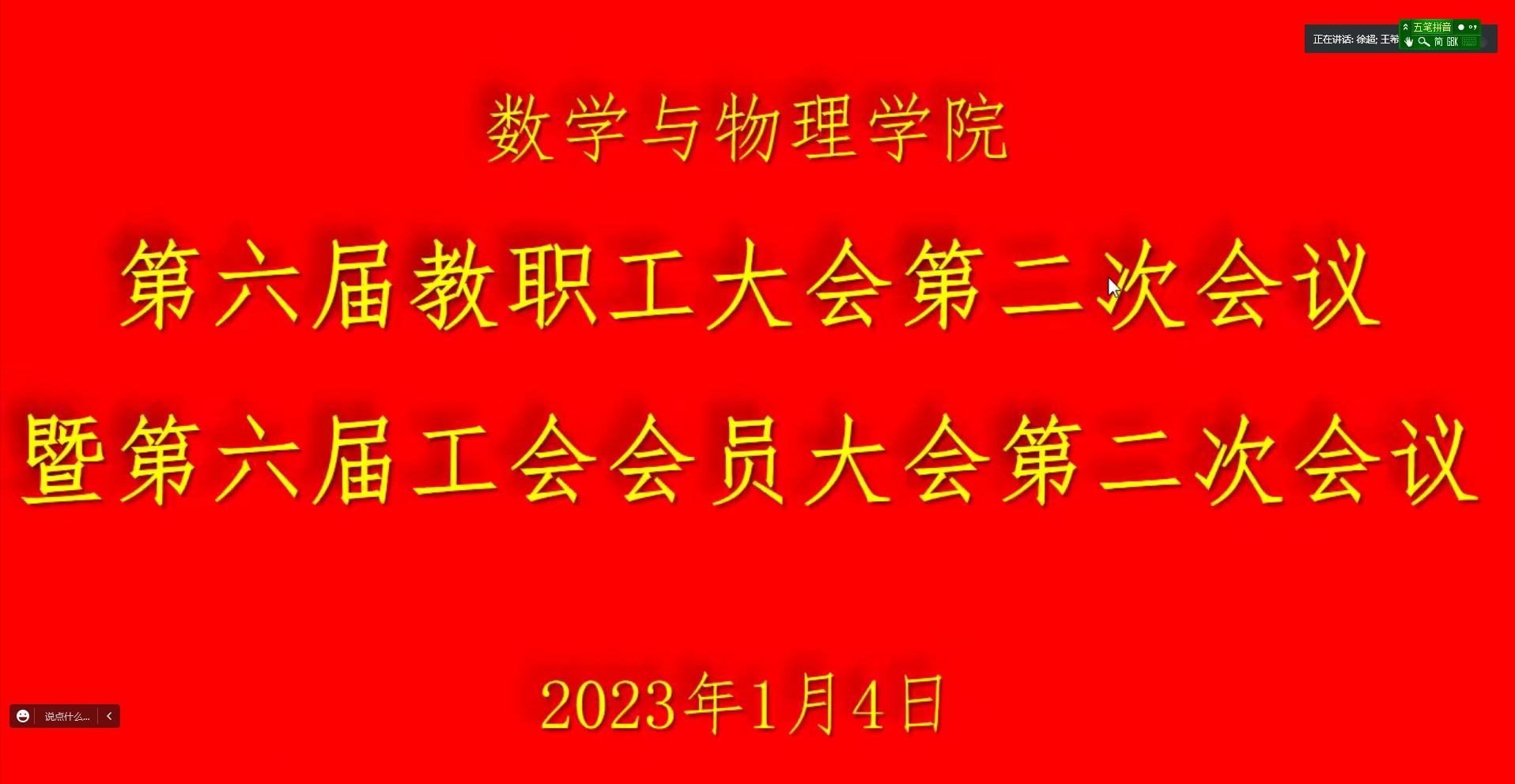 2023年1月4日上午,pp电子游戏平台官网第六届教职工大会暨工会会员大会第二次会议隆重召开。由于疫情原因,会议以线上腾讯会议形式召开。pp电子游戏平台官网党委书记吴太山、院长郭上江及学院全体教职工参加会议。院党委副书记徐超主持会议。