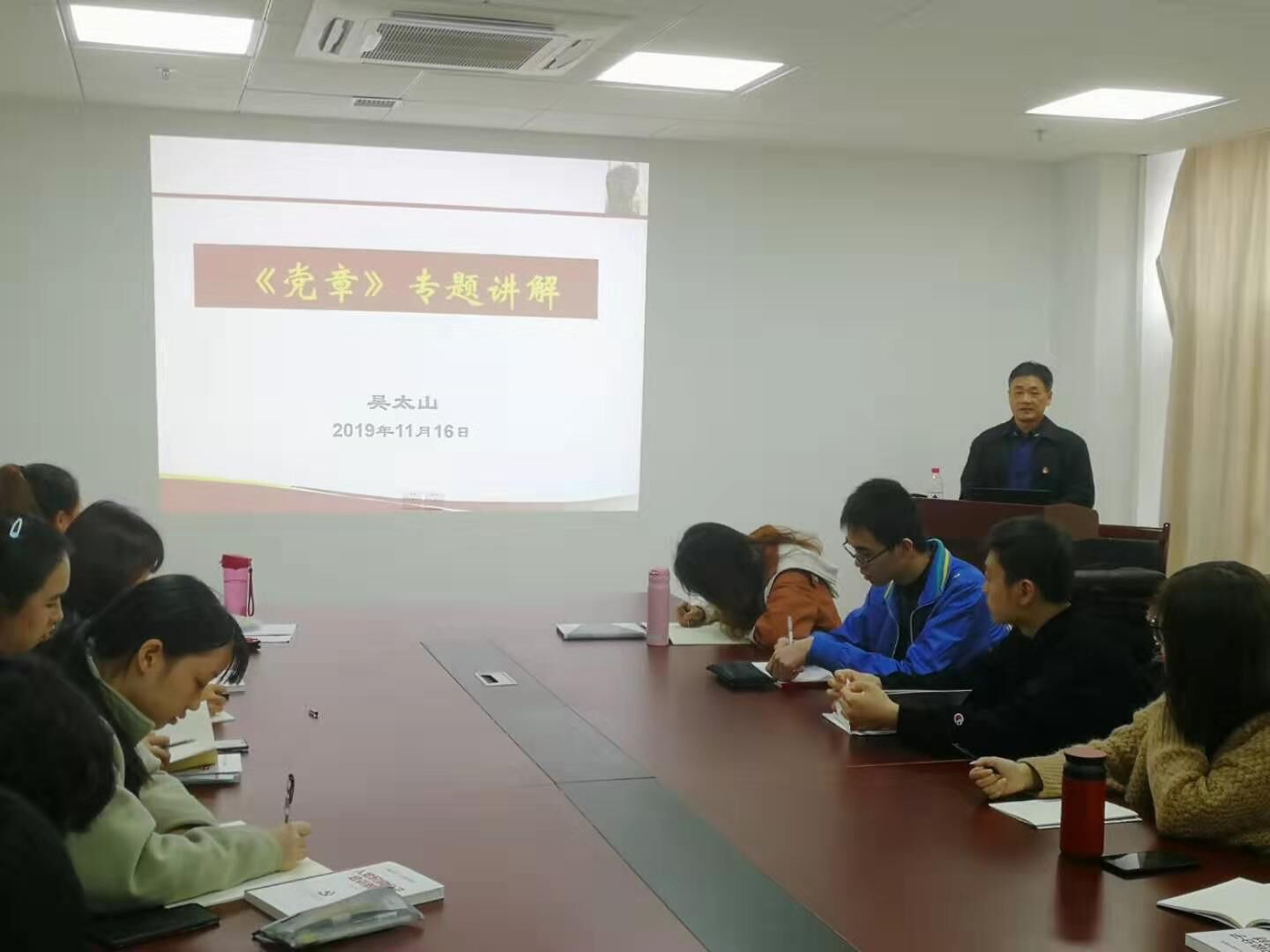 11月16日下午,pp电子游戏平台官网第66期入党积极分子培训班第二讲在东区教学综合楼A1505会议室举行。本次党课由学院党委书记吴太山讲授《党章》专题。院学生党建办主任孙宇涛主持。