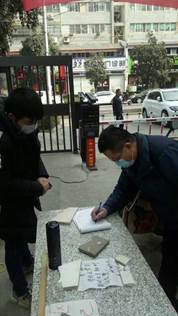 抗疫期间,pp电子游戏平台官网122181班李钰龙同学主动报名参加了当地社区抗疫志愿服务活动,他主要负责社区出入人员的登记及体温测量的工作。