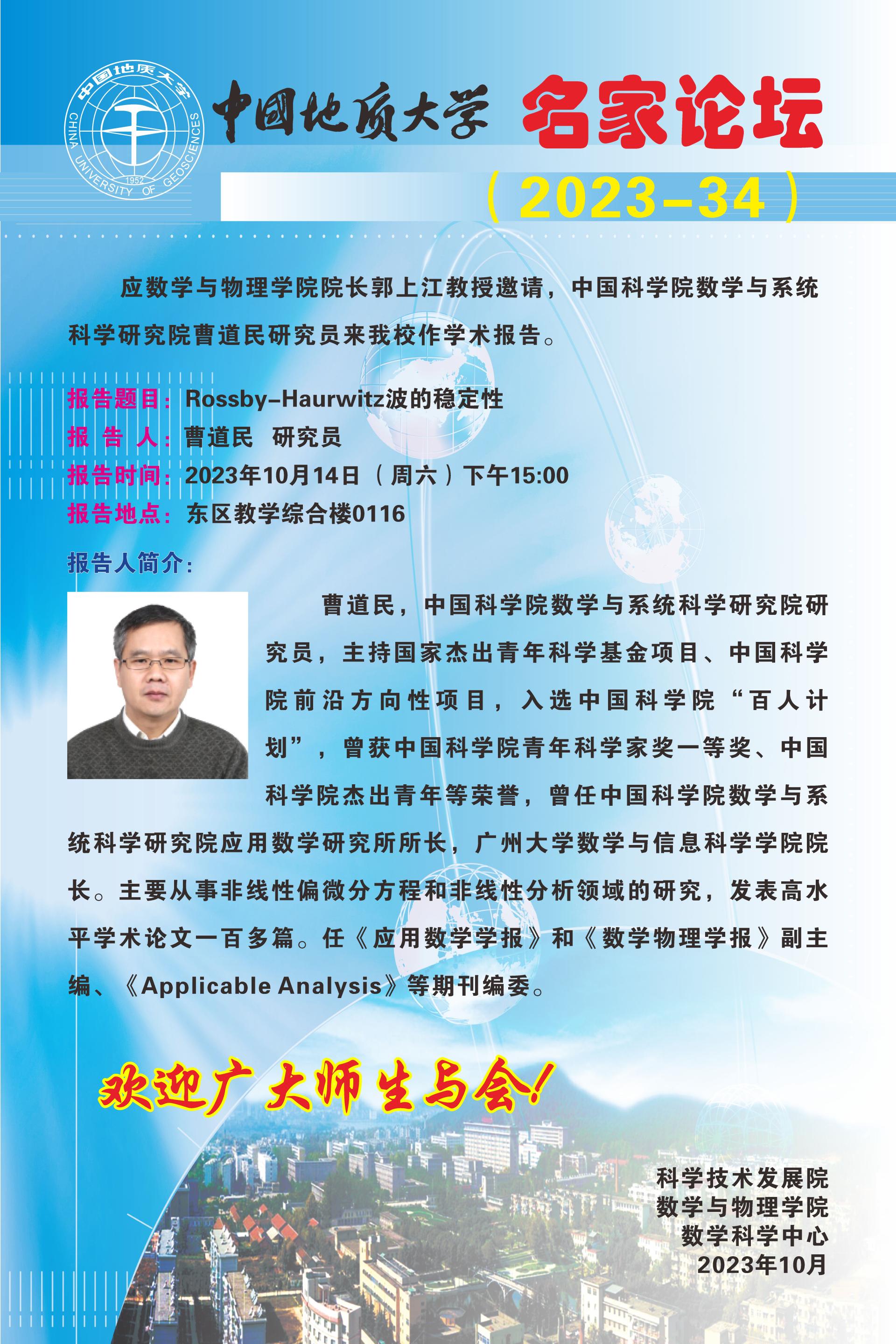 中国地质大学 数学科学中心 版权所有 地址:湖北省武汉市鲁磨路 388号 邮编:430074 鄂ICP备15021562号-1 鄂公网安备 42011102004169号